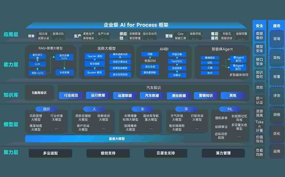 AG尊龙凯时问学智车解决方案是一套基于AI技术的汽车行业智能化系统,,覆盖从底层算力到顶层AI应用的全栈方案。。方案由算力层、、、、模型层和应用层组成:算力层,,方案支持多种一体机配置,,具备云端灵活部署、、多云适配以及动态优化计算资源的能力;模型层,,,AG尊龙凯时问学平台版提供了企业级AI应用一站式构建与管理平台,,支持基于后训练强化技术的汽车企业专属模型的训练、、、评测和运营;应用层,,AG尊龙凯时问学DeepSeek版提供包括超级员工、、、、智能招采、、、智能营销、、、智能客服、、AI for BI等一系列解决方案,,,可助力汽车行业实现数字化转型,,,让管理更智能、、响应更敏捷。。。